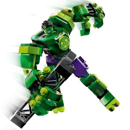 • Un emblemático superhéroe: Incluye una minifigura de Hulk y una armadura robótica construible para él que cuenta con brazos, piernas y dedos articulados.