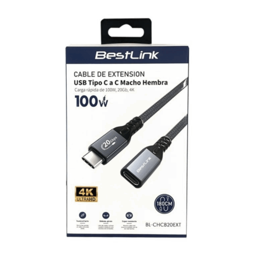 Bestlink Cable de Extensión USB Tipo C a C Macho/Hembra Carga Rápida 100W 20GB 4K 1.8MT