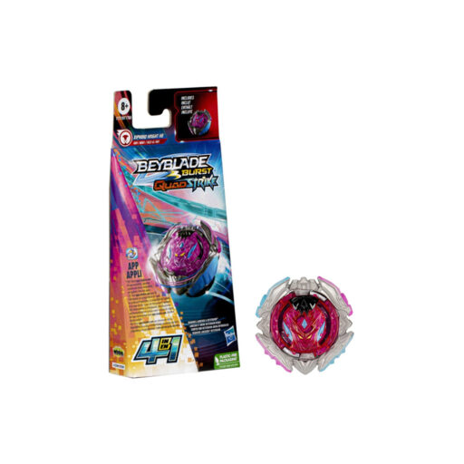 ¡La batalla ha alcanzado el siguiente nivel con el Set individual Beyblade Burst QuadStrike Xiphoid Knight K8! Con los tops Beyblade para niños y niñas a partir de 8 años, los Bladers podrán lanzar poderosos ataques y derrotar a sus oponentes en batallas más intensas. Los tops QuadStrike cuentan con puntas blindadas mejoradas para intensificar su rendimiento en la batalla. Puedes configurar el top en 4 maneras distintas para que tengas 4 estrategias diferentes, 4 maneras de personalizar el top, 4 maneras de combatir ¡y 4 maneras de ganar!