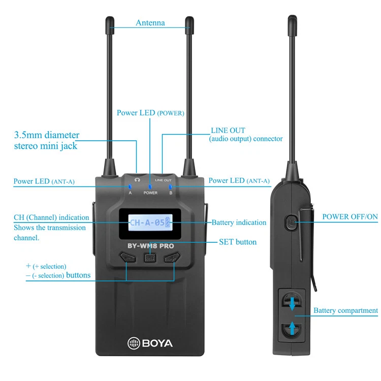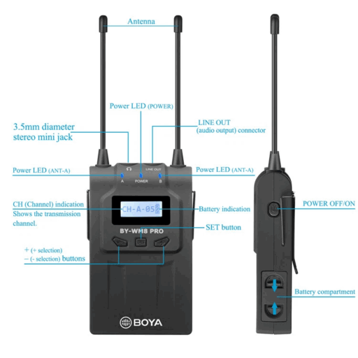 | Rango de frecuencia portadora: | 576,4 MHz-599,9 MHz (Transmisor: A) 568,6 MHz-592,1 MHz (Transmisor: B) |