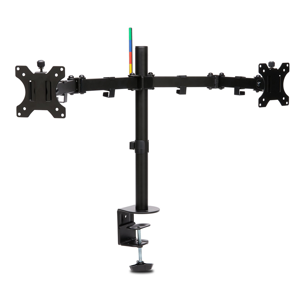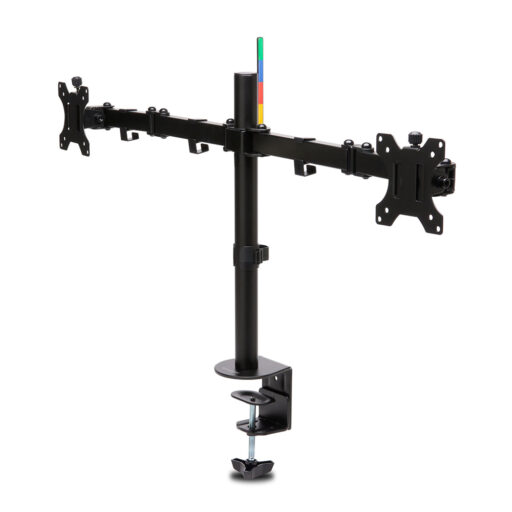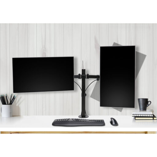 - La placa de montaje VESA 75/100 de liberación rápida se adaptan a los monitores hasta 32″ y 8 kg/17,6 libras (por brazo).