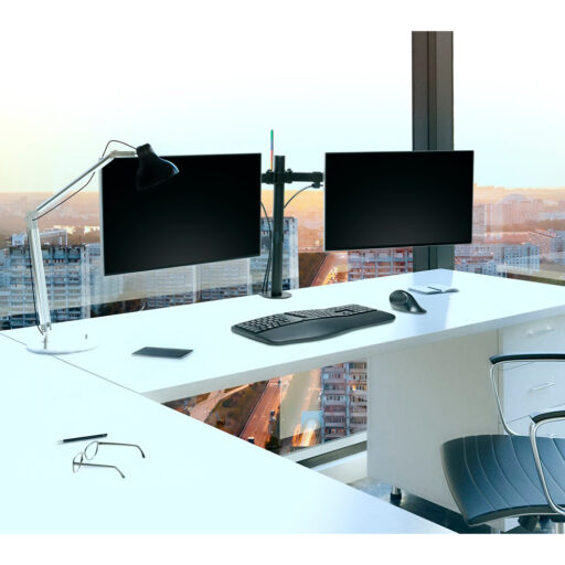 Lograr la altura ergonómica correcta de los monitores y ajustar la distancia es fácil, gracias al resistente y estable brazo extendible para monitores dobles SmartFit® Ergo. Te ayuda a tener un espacio de escritorio limpio y aprovechable, aparte de mejorar la ergonomía. El amplio margen de ajuste proporciona un giro de ±90°, rotación ±180° (en orientación vertical u horizontal), ajuste de la inclinación del monitor ±45°, y una extensión del brazo de hasta 39,9cm/15,7″. La abrazadera tipo C de metal resistente y el tornillo de ojal son fáciles de colocar y no dañan ni dejan marcas en el escritorio o la mesa. Cada brazo es compatible con pantallas de hasta 32″ y 8 kg.