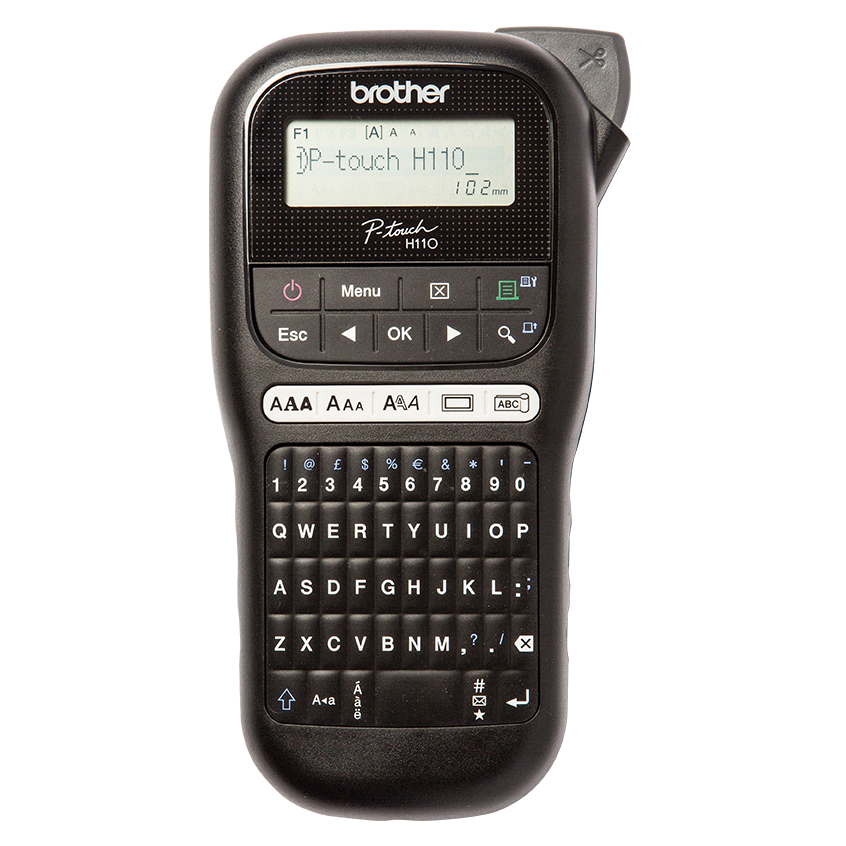 La PT-H110BK es ideal para la casa, oficina y para usar en cualquier lugar. Presenta un teclado QWERTY con prácticas teclas de un solo toque, y una pantalla gráfica con vista previa para revisar sus etiquetas antes imprimirlas. Personalice fácilmente sus etiquetas con 3 fuentes, 10 estilos, 14 marcos decorativos y más de 250 símbolos. Dentro de sus teclas de fácil acceso, se encuentra la práctica función de etiquetado de cable. Permite crear etiquetas con 1 o 2 líneas de texto. La memoria integrada guarda hasta 15 etiquetas para reimprimirlas con rapidez. Utiliza cintas «TZe» adhesivas, termoadherentes para ropa y ribbon (tela) para decoraciones de hasta 12 mm de ancho (~1/2″). Funciona con 6 baterías «AAA» o un adaptador opcional de CA (no incluídas, se compran por separado).