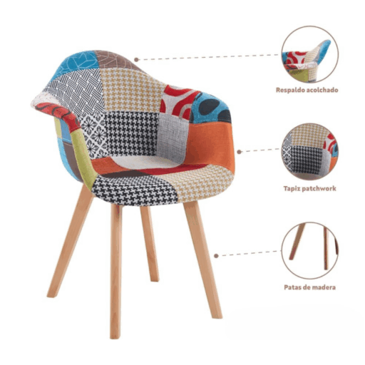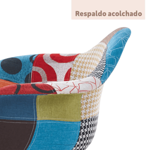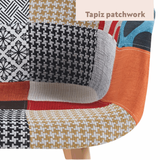 Tapizado en estilo patchwork que aporta un toque colorido y moderno.