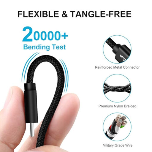 Fabricado con materiales de alta calidad, este cable está recubierto con trenzado de nylon, lo que no solo lo hace más resistente y duradero, sino que también evita enredos. Aunque no permite la transferencia de datos, es ideal para cargar teléfonos, tabletas, cámaras y altavoces de manera rápida y confiable. Con conectores reforzados, es una excelente opción para uso intensivo o diario.