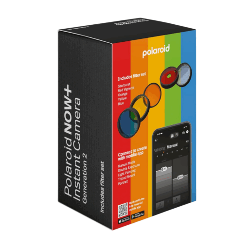 La Polaroid Now+ Gen 2 (modelo 9077) es una cámara instantánea analógica que se conecta por Bluetooth a la app de Polaroid para desbloquear herramientas creativas como prioridad de apertura, doble exposición, light painting, temporizador y modo manual. Integra un sistema de autoenfoque de doble lente para mayor nitidez, flash preciso y batería recargable por USB-C. Es compatible con películas Polaroid i-Type y 600, e incluye un set de 5 filtros de lentes. Su diseño mantiene el formato clásico y utiliza un 40% de plásticos reciclados.