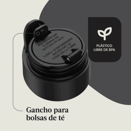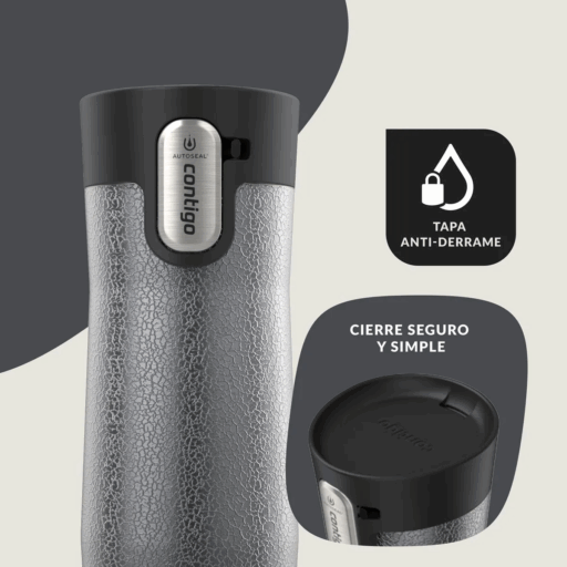 Su diseño ergonómico se adapta a la mayoría de los portavasos de autos, y el botón de apertura permite beber con una sola mano. Además, su tapa es apta para lavavajillas en la rejilla superior, lo que facilita su limpieza. Perfecto para café, té o cualquier bebida que necesites llevar contigo durante el día.