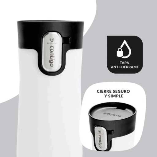 Botella Térmica Contigo® – Disfruta de tus aventuras urbanas o al aire libre con esta botella térmica que mantiene la temperatura de tu bebida durante horas. Gracias a su aislamiento al vacío THERMALOCK™, mantiene las bebidas calientes hasta 30 horas y frías hasta 45 horas. Ideal para explorar una exhibición de arte, pasar el día en el campo de golf, navegar o simplemente descubrir nuevos lugares. Además, su tapa de acero inoxidable se convierte en una taza aislada, perfecta para disfrutar de un trago en cualquier momento y lugar. ¿A dónde te llevará hoy tu botella térmica Contigo®?