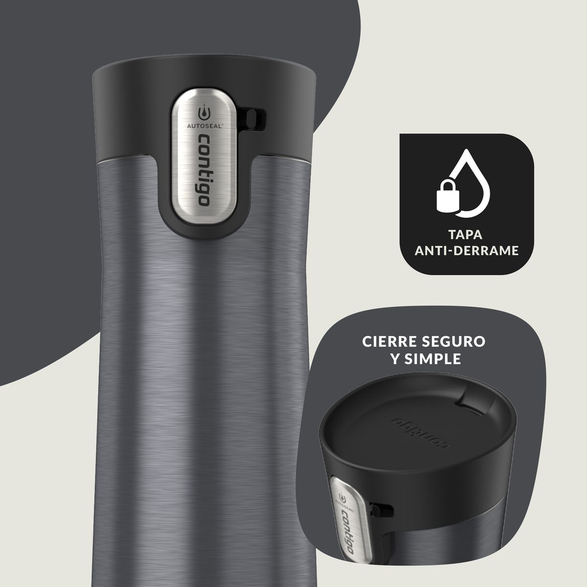 Hay un viajero, explorador urbano y un caminante en todos. El Contigo AUTOSEAL® West Loop vaso térmico de acero inoxidable con aislamiento al vacío y tapa de fácil limpieza, 591 ml, está hecho pensando en cada viaje. La máxima conveniencia para llevar, este vaso térmico es a prueba de fugas y derrames gracias a la tecnología AUTOSEAL®. Presiona un botón para beber, luego suéltalo para sellar después de cada sorbo. La aislación al vacío THERMALOCK mantiene los líquidos muy calientes hasta por 6 horas o muy fríos hasta por 12. La tapa de fácil limpieza se abre completamente cuando terminas de beber, permitiéndote llegar a todos los rincones para una limpieza a fondo. La tapa innovadora también es de una sola pieza, por lo que no hay partes que perder cuando la pongas en la rejilla superior de tu lavavajillas. Los cuerpos de acero inoxidable deben lavarse a mano.