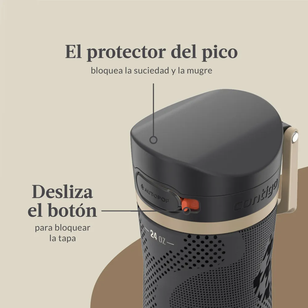 • Botón para beber y sistema AUTOPOP® a prueba de derrames.