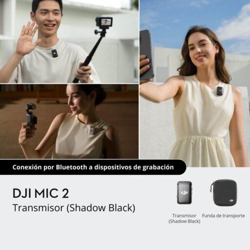 Compatible con sistemas DJI Mic 2 y Bluetooth.