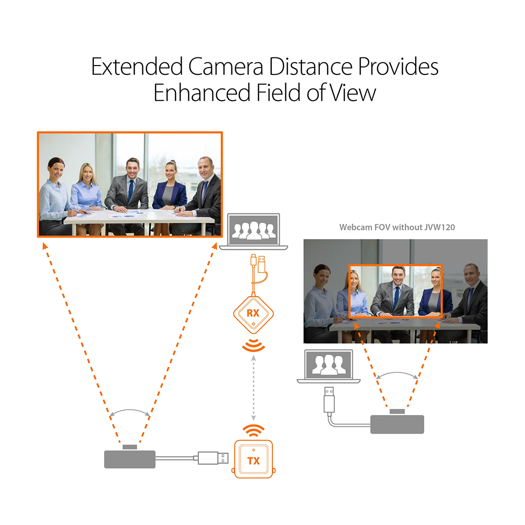 El Extensor Inalámbrico j5create JVW120 es la herramienta ideal para quienes buscan mayor flexibilidad al usar sus dispositivos USB durante transmisiones en vivo y videoconferencias. Este dispositivo está diseñado específicamente para webcams, micrófonos y altavoces USB, ofreciendo una conexión estable y sin interrupciones, sin necesidad de depender de cables.