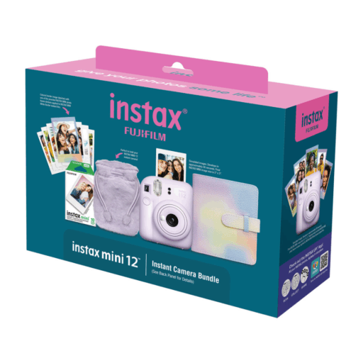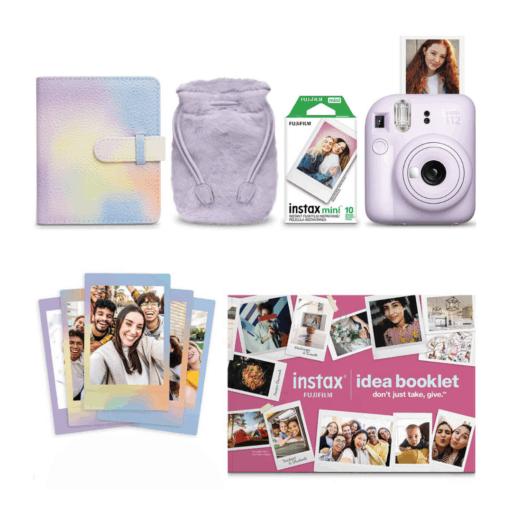 El Fujifilm Instax Mini 12 Purple Holiday Bundle 2024 es un set ideal para capturar y compartir recuerdos de manera creativa y divertida. Este bundle de edición especial incluye la cámara Instax Mini 12 en color lila pastel, reconocida por su diseño compacto, funcionamiento simple y excelente calidad de imagen en formato instantáneo.