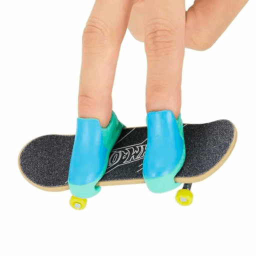Incluye un par de tenis extraíbles que sujetan los dedos para facilitar trucos.
