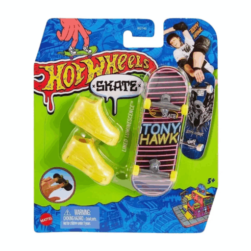 Este juguete combina la emoción del skate con la destreza manual: una patineta Hot Wheels Skate™ lista para usar que incluye zapatillas especiales para dedos, ideales para hacer trucos como ollies y rail slides. Diseñado junto a la leyenda del skate Tony Hawk, ofrece estilo y funcionalidad desde la primera jugada. Ideal para coleccionar, regalar o expandir una colección temática de fingerboards.