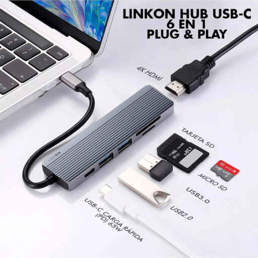 LINKON Hub USB-C 6 en 1 HDMI 4K MicroSD TF Gris