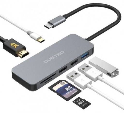 Conecta tu escritorio a tu MacBook en un solo paso con el adaptador multipuerto de Dusted Este adaptador te permite conectar una pantalla via HDMI, hasta 3 dispositivos USB-A y tu cargador USB-C, usando un solo puerto de tu equipo Y además, incluye un lector de tarjetas SDXC, para que puedas transferir fácilmente tus fotografías