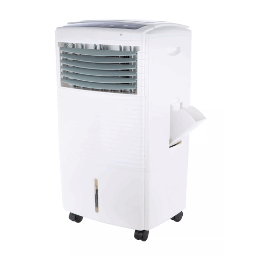 El Enfriador de Aire, posee control remoto, indicador de llenado de tanque, panel de control tactil, ruedas y asa para transportarlo facilmente a cualquier lugar.