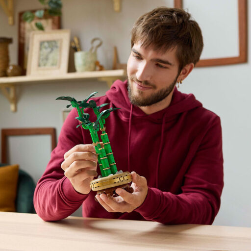 - Planta decorativa construible: Disfruta de un proyecto para practicar la atención plena e inspirado en la naturaleza con el kit de construcción DIY para adultos LEGO® Botanical Bambú de la Suerte.