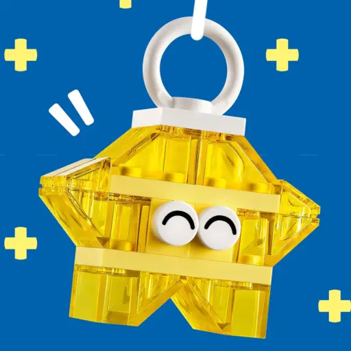 Los niños empiezan construyendo un corazón, un fantasma, una sirena, una estrella y un unicornio de juguete. A medida que adquieran confianza, avanzarán hacia una nave espacial, una nube, una estrella fugaz, un pájaro, un narval, un helado y una flor. Después, podrán disfrutar de diversión a lo grande dando forma a un monumental castillo con dragón de juguete. Los ladrillos translúcidos, las piezas que representan ojos y bocas, y los ladrillos a modo de colgador para exponer las creaciones aportarán destellos, luminosas transparencias y aún más diversión creativa a los modelos de los peques.