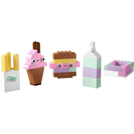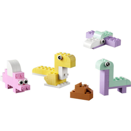 Este creativo kit de construcción contiene 333 ladrillos en una gama de formas, tamaños y colores pastel. 18 de ellos están decorados con ojos llenos de expresividad que los peques pueden usar para dar vida a sus creaciones. Incluye claras instrucciones de construcción en formato impreso para hacer fácilmente 5 modelos: una nube, un helado, un dinosaurio, un gato y un robot. A medida que adquieran confianza en su capacidad creativa, los niños se lo pasarán genial explorando qué más pueden construir. Las instrucciones del set también están disponibles en versión digital en la app LEGO Builder.