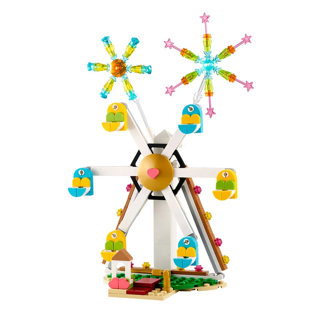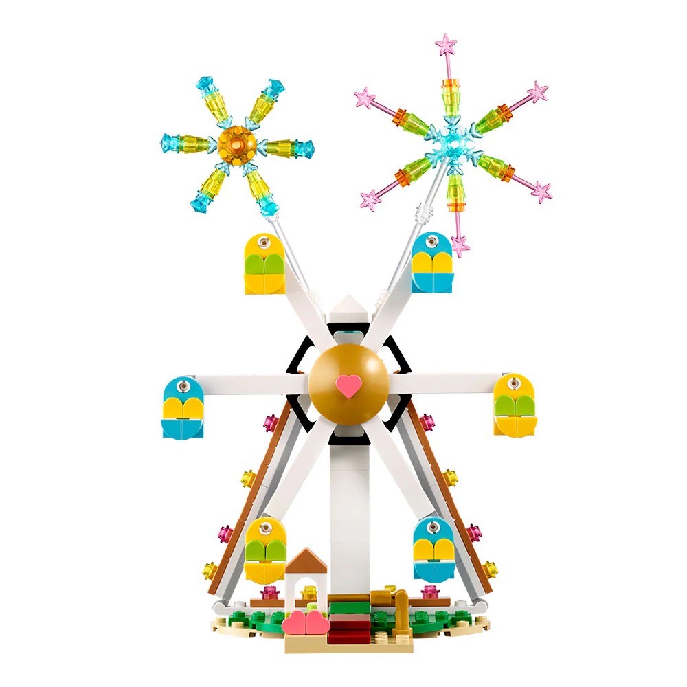 • Corazón emblemático: La rueda de la fortuna incluye un elemento que representa un corazón, el símbolo icónico de todos los productos de la gama LEGO® Celebración.