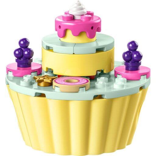 Los peques se transportarán con Gabby y Muffin a una cocina repleta de actividades. Hay una amasadora y también ingredientes, como nata montada, fruta y chocolate, además del horno del gato chef. La magdalena de varios pisos cuenta con una sección superior giratoria que los niños decorarán con remolinos de glaseado, fruta, chocolate y 2 estrellas doradas. Con el ladrillo para principiantes, pronto sentirán la emoción que despierta la construcción creativa. Cuando acaben de jugar, pueden guardar todos los accesorios dentro del gran dulce. La caja contiene una colorida guía con historia visual y la app LEGO Builder les proporciona intuitivas herramientas de acercamiento y giro para visualizar el modelo.