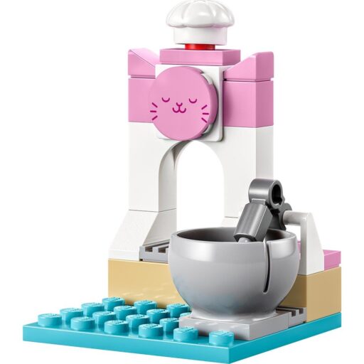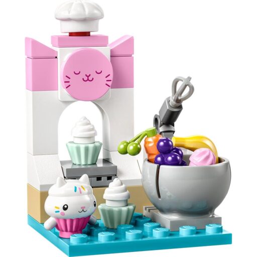 - Populares personajes: Incluye un minipersonaje de Gabby, una figura de Muffin y una pequeña cocina construible con un bol, ingredientes y mucho más. También trae una magdalena gigante con elementos para decorarla y una sección superior giratoria.