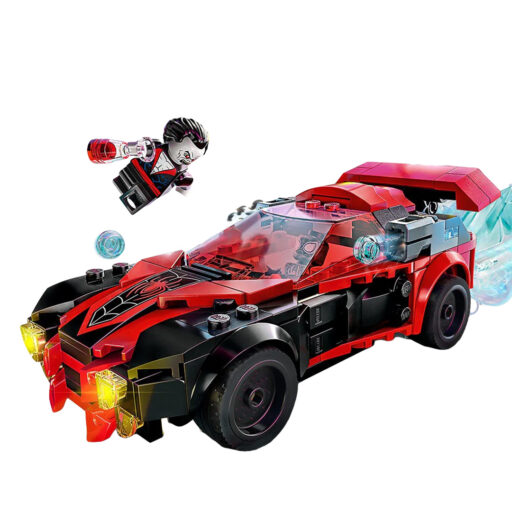 - Acción de gran realismo: Incluye 2 emblemáticas minifiguras (Miles Morales y Morbius), así como un coche trucado con 2 cañones que disparan y un elemento que representa un propulsor en la parte trasera