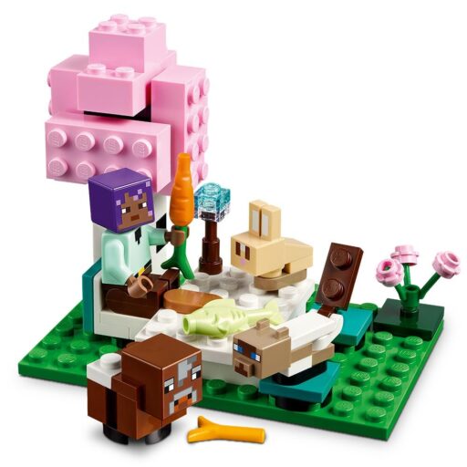 - Juguete de acción y cuidado de animales: Este set LEGO® de 3 secciones ambientado en el bioma Llanura tiene un espacio de juego vallado con una sala de alimentación, un área de pícnic al aire libre y una alfombra donde pueden descansar los animales.