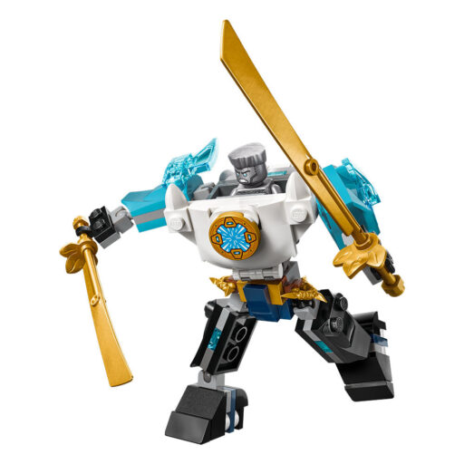 - Mech articulado de juguete: La Armadura Robótica de Combate de Zane cuenta con brazos, piernas y manos articulados, parte superior del cuerpo que gira 360 grados, pecho que se abre para colocar una minifigura dentro y 2 grandes espadas.