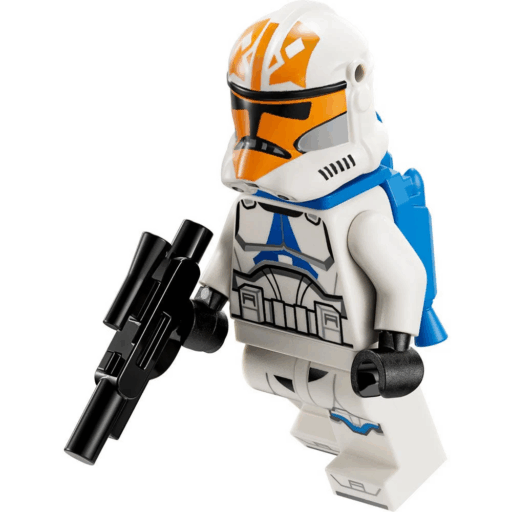 - 4 minifiguras LEGO® Star Wars™: El Capitán Clon Vaughn con un casco especial y 3 soldados clon de la 332, además de un fusil bláster, 3 blásteres y 2 elementos que representan mochilas propulsoras.
