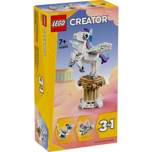 - Dimensiones: El Pegaso Mítico de este set de construcción LEGO® de 278 piezas mide aproximadamente 19 cm de altura.