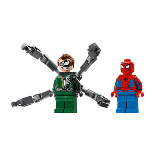 Trae minifiguras LEGO de Doc Ock y Spider-Man. Doc Ock tiene 4 largos tentáculos flexibles y muestra los distintivos rasgos de Venom, que se ha infiltrado en el villano para convertirlo en un ser aún más ruin. Las minifiguras pueden agarrar elementos, como una farola, dinamita y un cubo de basura que contiene una botella, un pez, un hueso y una cáscara de plátano. La moto de Spider-Man, el lanzatelarañas y el cañón que dispara pondrán un extra de acción trepidante en las aventuras de los peques. Para pasarlo todavía mejor, los constructores pueden acercar y girar versiones en 3D de sus modelos y seguir sus progresos con la divertida e intuitiva app LEGO Builder.