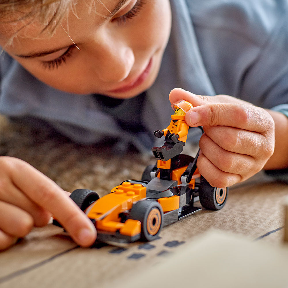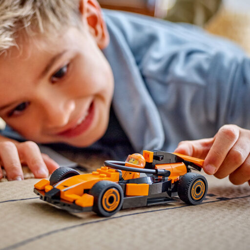 - Auto de carreras de juguete LEGO® para mayores de 6 años: Los niños se sumergirán en las emociones de las carreras de velocidad de Formula 1® con el juego LEGO City Piloto de F1® con Auto McLaren.