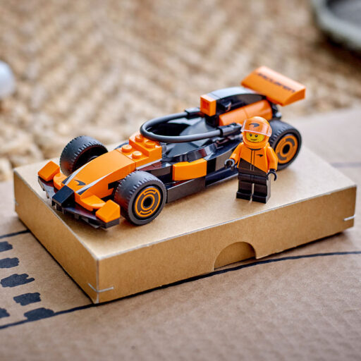 - ¿Qué contiene la caja? Incluye todo lo que los niños necesitan para construir un auto de carreras de F1® McLaren con una minifigura de un piloto.