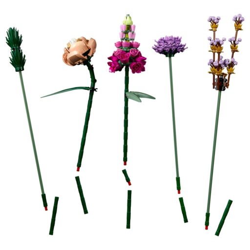 Cada detalle del ramo se realiza con componentes LEGO, todos personalizables para crear una pieza original y digna de ver. La mayoría de las flores tienen pétalos que pueden colocarse en distintas posiciones: así te divertirás diseñando diferentes arreglos.