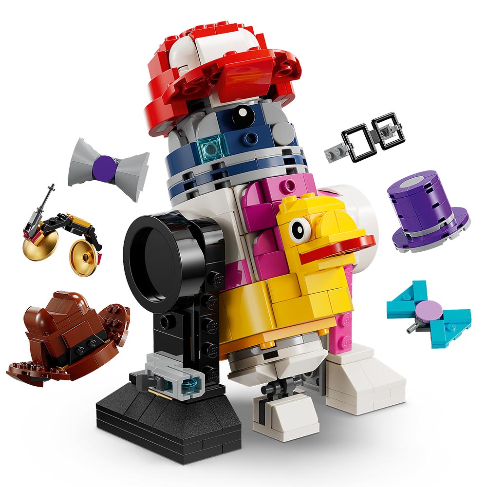 - Accesorios construibles para los droides: Un pato, un sombrero de vaquero, una gorra de béisbol, un sombrerito con una flor, un bigote, un helado, un globo, gafas, un lazo, una pajarita, auriculares, 2 reactores y 2 cañones que disparan
