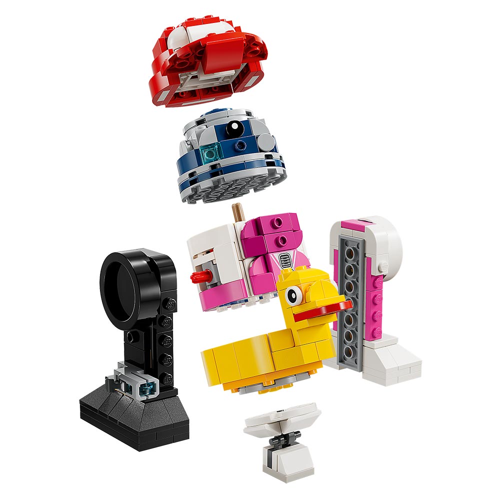 - Construye a tu propio R2-D2 y 3 droides personalizables más: Construye a 4 droides de Star Wars™ clásicos y mezcla sus elementos con el set LEGO® Star Wars Fábrica Creativa de Droides para peques y toda la familia