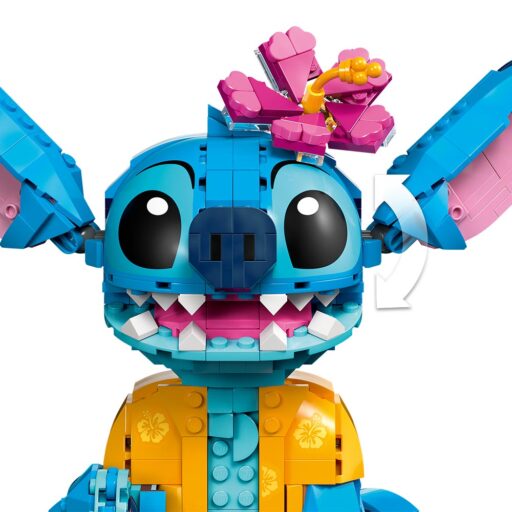 • Stitch, elpersonaje Disney: Este creativo set de construcción LEGO® incluye un modelo de exposición basado en Lilo & Stitch, un cucurucho de helado construible y una flor de adorno para el personaje.