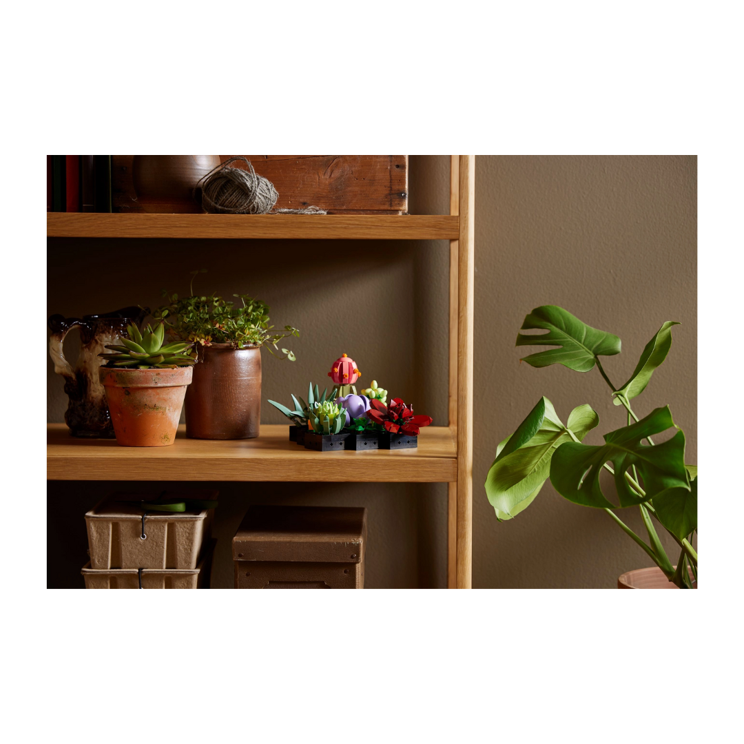 Las suculentas son una apuesta genial para tener un pedacito de naturaleza en tu hogar y realzar la decoración. Ahora podrás disfrutar de un proyecto de construcción consciente que te propone crear una elegante composición de plantas que quedará perfecta en cualquier espacio con el kit de construcción LEGO® Suculentas (10309) para adultos. Recréate dando forma a los detalles de las 9 suculentas diferentes, cada una inspirada en una variedad real. Después, luce tu creatividad con una preciosa planta de adorno que no requiere mantenimiento.