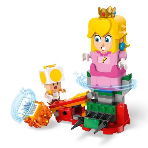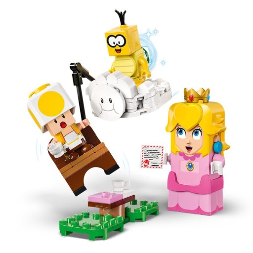 - 4 figuras LEGO® Super Mario™: Este set LEGO Nintendo® contiene una figura de juguete interactiva de la princesa LEGO® Peach™ y también un Lakitu, un Toad Amarillo y una Gota de Lava.