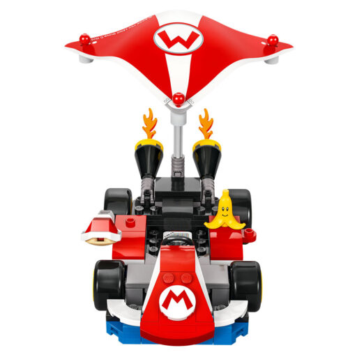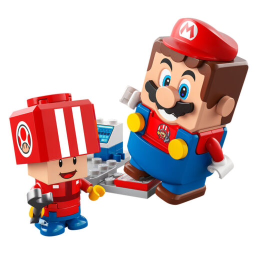 - Juego LEGO® Super Mario™ con un coche de juguete: Forma equipo con Toad (boxes) para competir, derrapar y planear con un modelo construido con ladrillos del kart estándar de Mario Kart™ y, además, una estación de trabajo.