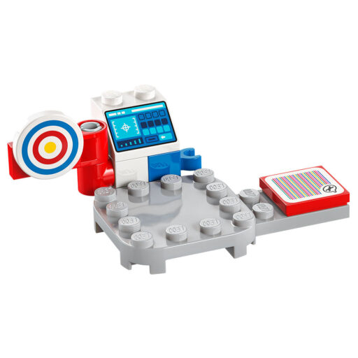- Juego interactivo: Coloca a LEGO® Mario™, LEGO® Luigi™ o LEGO® Peach™ (figuras no incluidas) en el kart para desencadenar efectos de sonido/visuales y pisa la etiqueta de acción de la estación de trabajo para provocar otras reacciones digitales.
