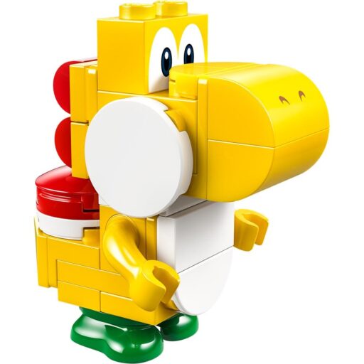 - 1 figura de juguete LEGO® Super Mario™: Yoshi amarillo, a quien pueden saludar LEGO® Mario™, LEGO® Luigi™ o LEGO® Peach™. (Nota: Estas 3 figuras interactivas no están incluidas).