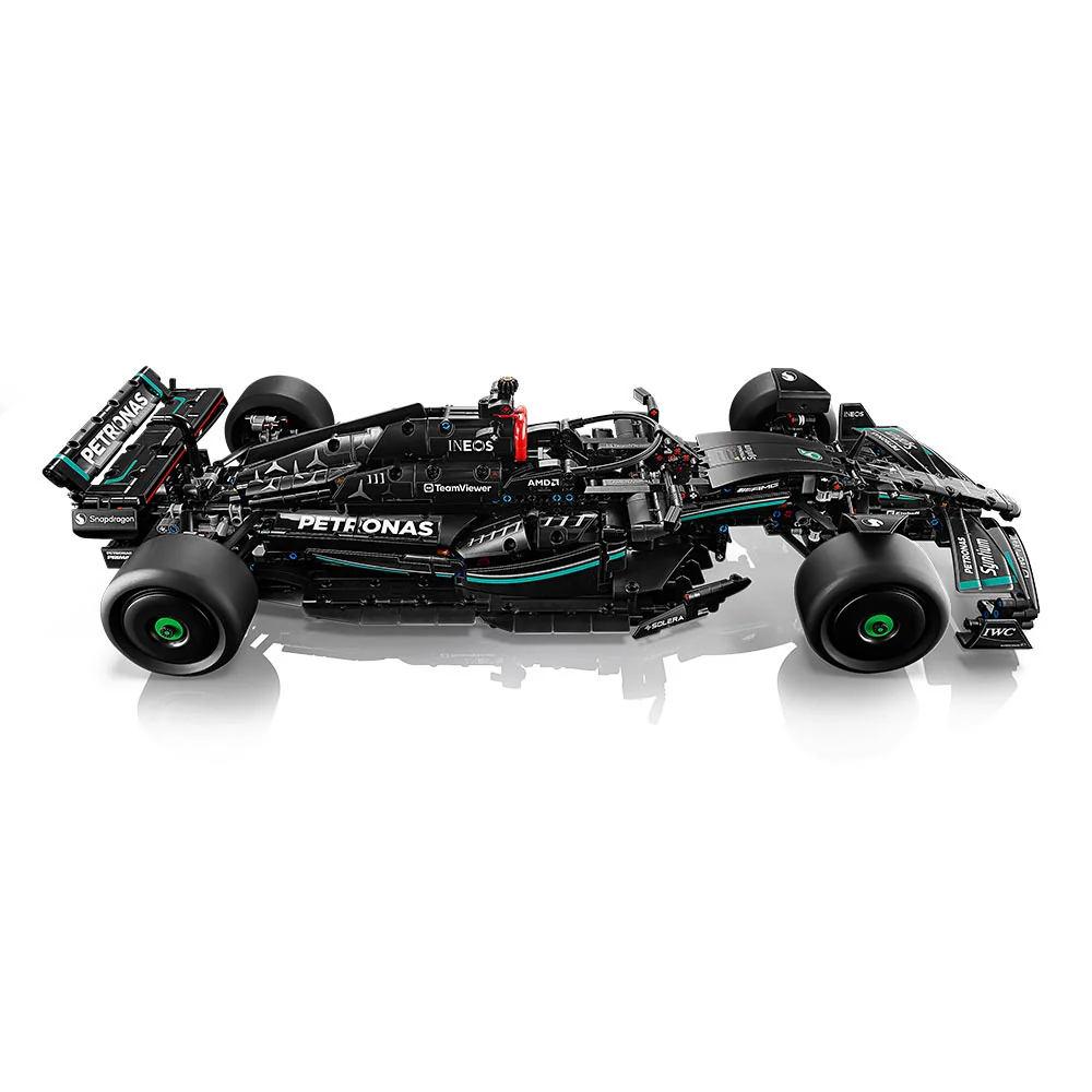 Sumérgete en la construcción del modelo LEGO® Technic™ del auto Mercedes-AMG F1 W14 E Performance (42171) a escala 1:8. Este detallado modelo captura la esencia de la velocidad y la precisión con su diseño auténtico y colores característicos. El auto cuenta con dirección funcional, la cual puede ser controlada mediante el volante o una rueda ubicada en la parte superior del vehículo. Al retirar la cubierta del motor, podrás apreciar el diferencial y el motor de 6 cilindros con pistones que se mueven. Además, incluye una aleta con mecanismo inspirado en el sistema DRS del vehículo real. Este modelo es una experiencia de construcción enriquecedora, ideal para aficionados a las carreras y entusiastas de los sets de construcción.