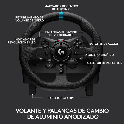 El volante de carreras y pedales Logitech G923 es la elección perfecta para los entusiastas de los videojuegos de carreras en PS5 y PS4. Diseñado para ofrecer una experiencia de conducción inmersiva, este volante cuenta con un movimiento realista que simula la sensación de estar al volante de un auto de carreras. Su diseño ergonómico y ajustable permite adaptarse a diferentes posiciones, brindando comodidad durante largas sesiones de juego. Con una altura de 44 cm, un ancho de 30 cm y una profundidad de 33 cm, el G923 se integra fácilmente en cualquier espacio de juego. Aunque no incluye soporte para volante ni para pedales, su estructura robusta garantiza estabilidad y durabilidad. La posibilidad de ajustar la altura y la posición del volante permite personalizar la experiencia de conducción según las preferencias del usuario. Este volante es ideal para gamers que buscan mejorar su rendimiento en las pistas virtuales. La tecnología de retroalimentación de fuerza proporciona una respuesta precisa a cada movimiento, permitiendo una mayor conexión con el juego. Con el Logitech G923, cada curva y cada aceleración se sienten más reales, elevando la emoción de cada carrera.