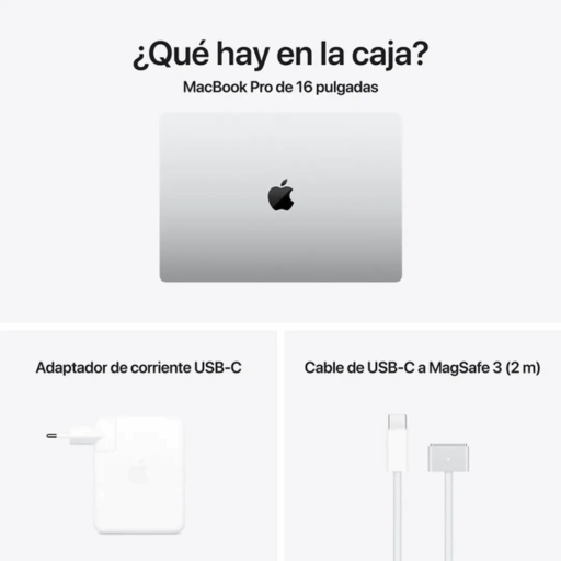 La pantalla Liquid Retina XDR de 14,2 pulgadas proporciona una calidad de imagen impresionante con una resolución de 3024 x 1964 píxeles, brillo sostenido de 1000 nits y pico de 1600 nits para contenido HDR, y tecnología ProMotion de hasta 120Hz. Todo esto en un elegante chasis de aluminio reciclado color plata, con un peso de solo 1,62 kg.