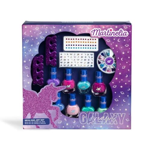 El Martinelia Kit de Manicure Galaxy para Niñas es el set perfecto para introducir a las pequeñas en el mundo de la manicura de manera divertida y segura. Con esmaltes en tonos brillantes, purpurinas y stickers decorativos, este kit fomenta la creatividad mientras garantiza un uso amigable y seguro para niños. Su presentación inspirada en la temática Galaxy Dreams lo convierte en un regalo atractivo y especial, ideal para estimular la imaginación y la diversión.