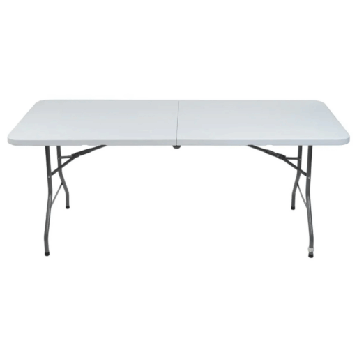 • Patas plegables de acero gris y partes superior de color blanco y gris claro